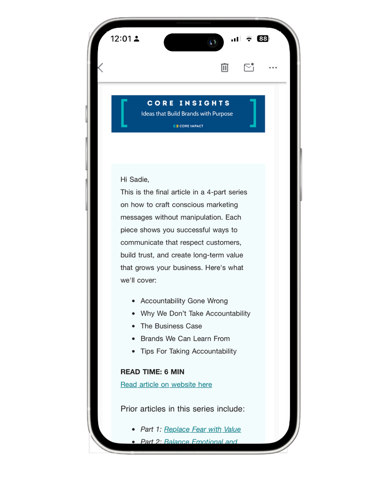 Each month, Core Insights delivers actionable insights to your inbox on growth strategy, conscious marketing, and sustainability — helping you build brands people trust.